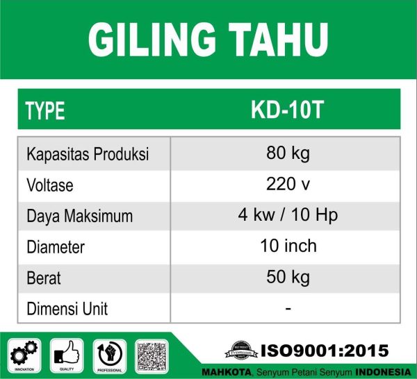 Mesin penggiling basah untuk kedelai dalam mengolah bahan baku tahu dan mesin ini juga dapat digunakan untuk padatan lunak, serta cabai dan tomat.