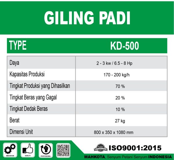 | Daya | 2 – 3 kw / 6.5 – 8 Hp |