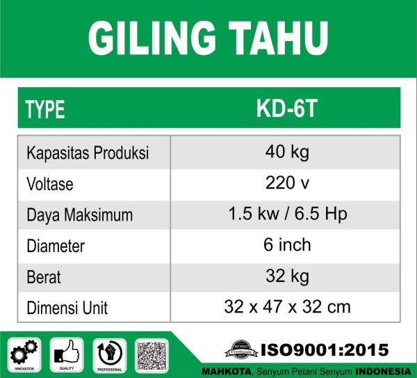 Mesin penggiling basah untuk kedelai dalam mengolah bahan baku tahu dan mesin ini juga dapat digunakan untuk padatan lunak, serta cabai dan tomat.
