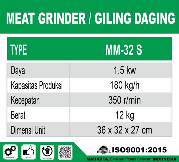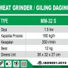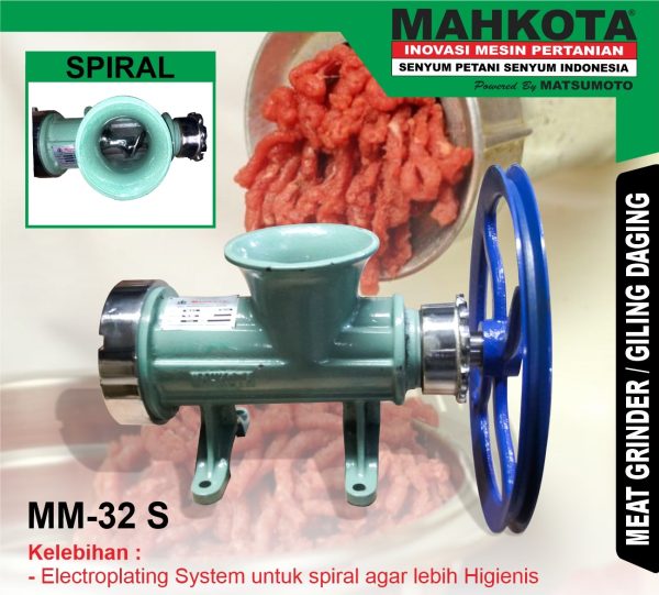 mesin penggiling daging menggunakan penggerak motor litrik, serta mudah dalam penggunaan dan mudah dibersihkan. Mesin ini sangat cocok untuk menggiling daging dan kacang – kacangan.