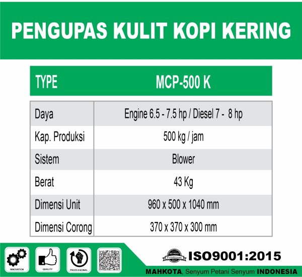 | Daya | Engine 6.5 – 7.5 HP / Diesel 7 – 8 hp |