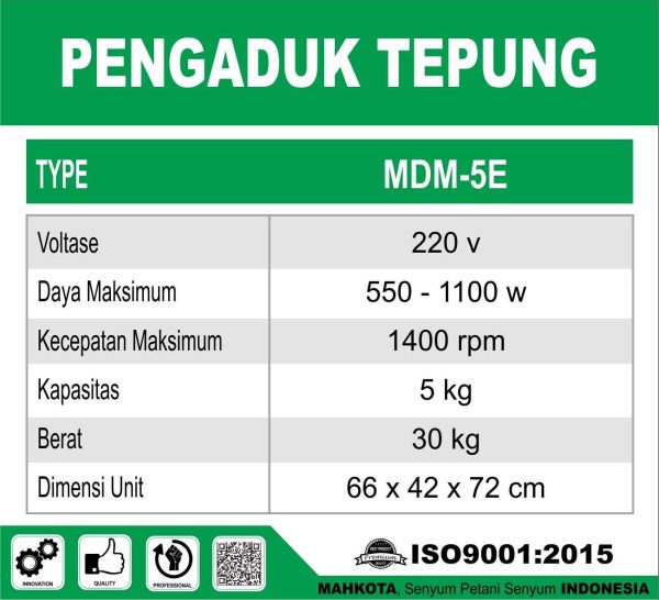 Mesin pengaduk adonan tepung yang mampu mengaduk adonan secara stabil dan merata. Mesin ini dilengkapi dengan bahan stainless steel yang memudahkan dalam melakukan perawatan karena body mesin mudah dibersihkan.