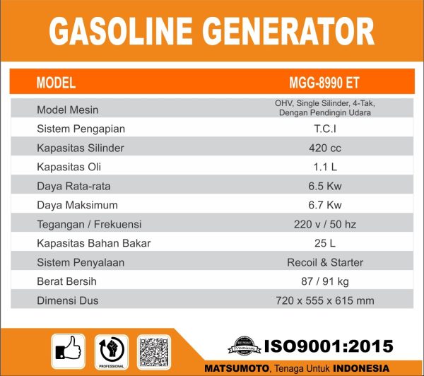 | Model Mesin | OHV, Single Silinder, 4-Tak, Dengan Pendingin Udara |