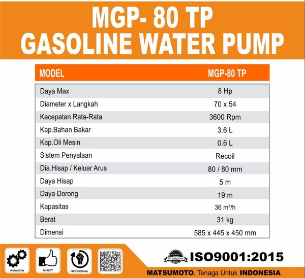 | Diameter Hisap / Keluar Arus | 80/80 mm |