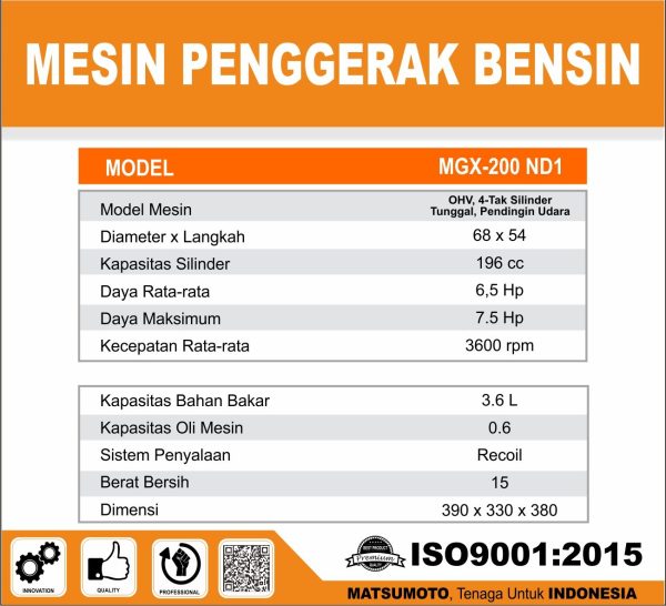| Model Mesin | OHV, 4-Tak Silinder Tunggal, Pendingin Udara |