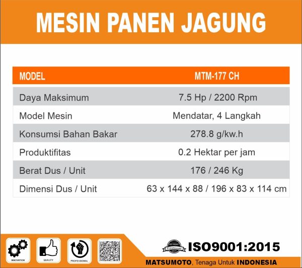 | Daya Maksimum | 7.5 Hp / 2200 rpm |