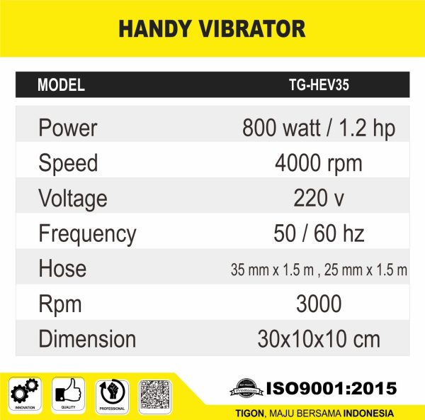 Handy Electric Vibrator adalah mesin yang digunakan untuk pemadat coran atau semen.