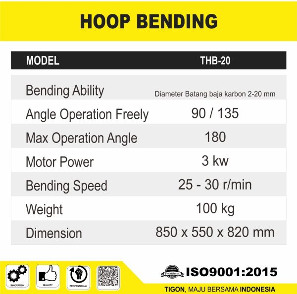 | Bending Speed | 25 – 30 r/min |